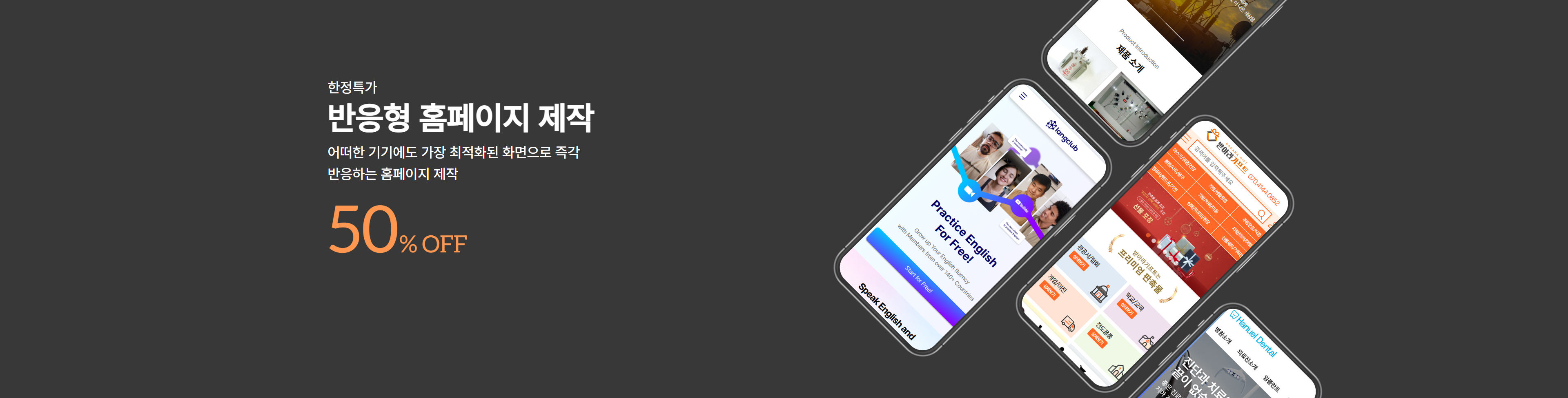웹, 모바일, 태블릿 등 어떠한 기기에도 가장 최적화된 화면으로 즉각 반응하는 홈페이지 제공 - 제작비 10% 할인
